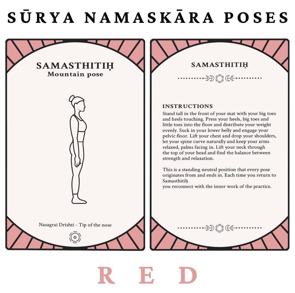 This is a great way to get inspired and get started with your practice. Start by studuing the sun salutation cards and then do as many rounds you need to warm up your body.